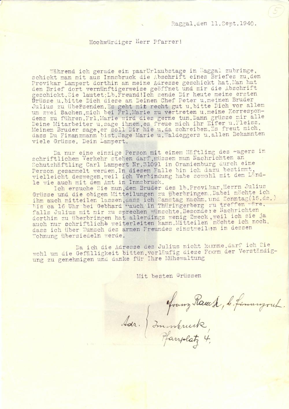 Briefe, Karten und Telegramme während der Haftzelt in Innsbruck und in den Konzentrationslagern Sachsenhausen und Dachau.