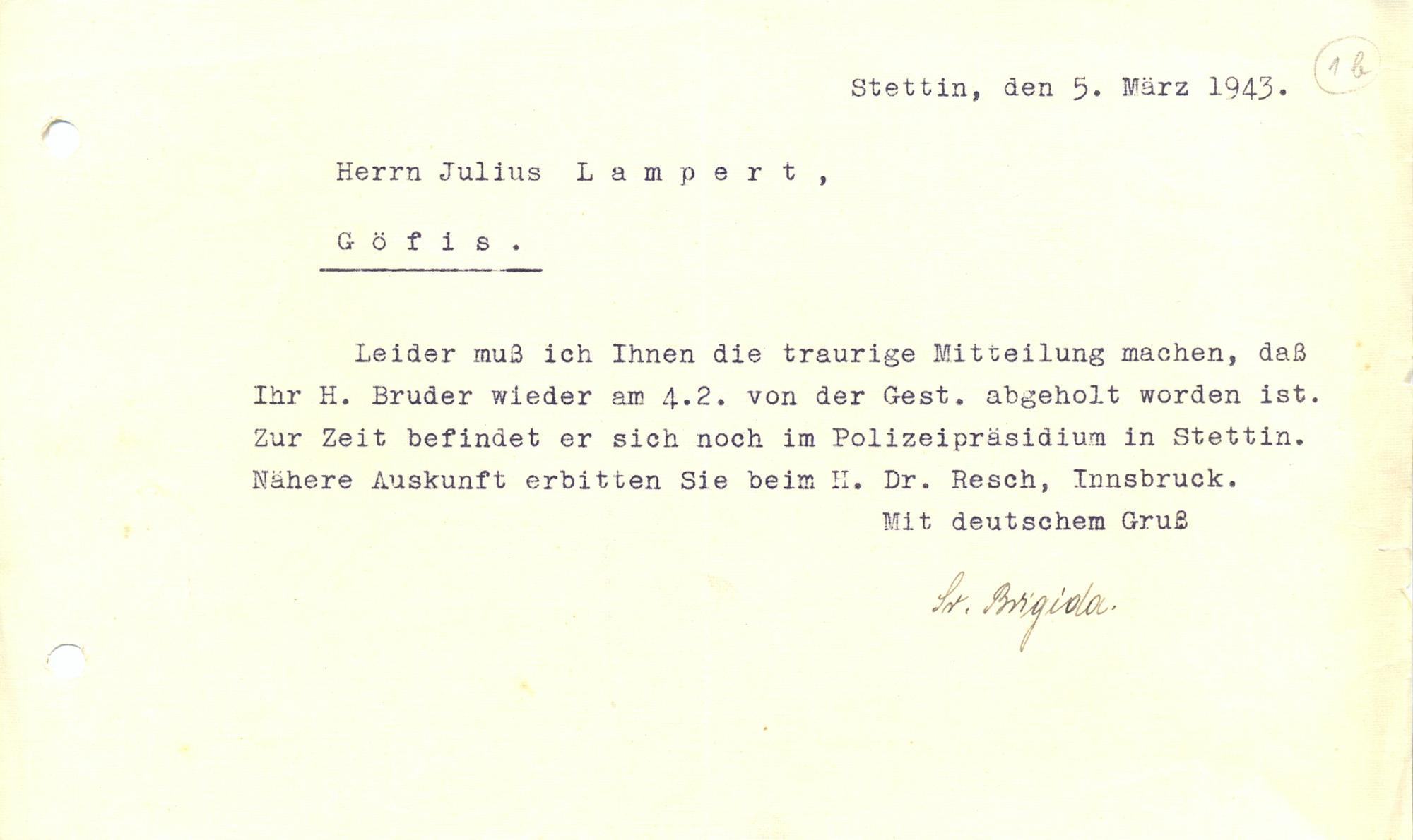 Die Zeit der Verbannung und Gestapohaft in Stettin