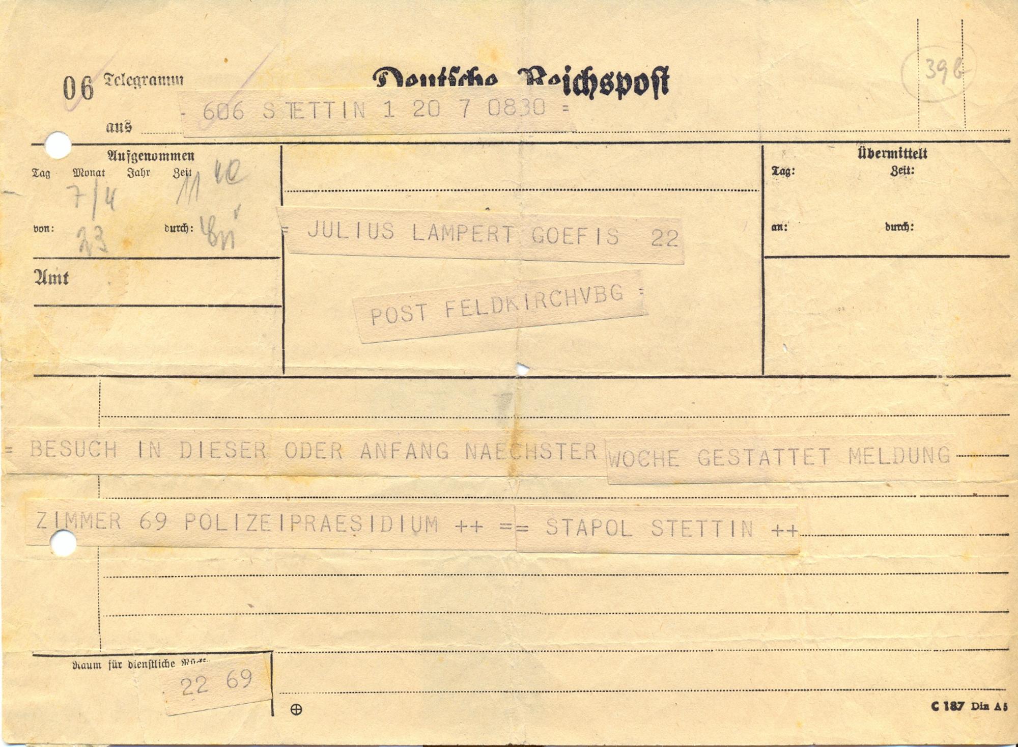 Die Zeit der Verbannung und Gestapohaft in Stettin
