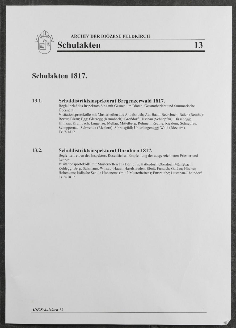Schulakten - Generalvikariat Feldkirch