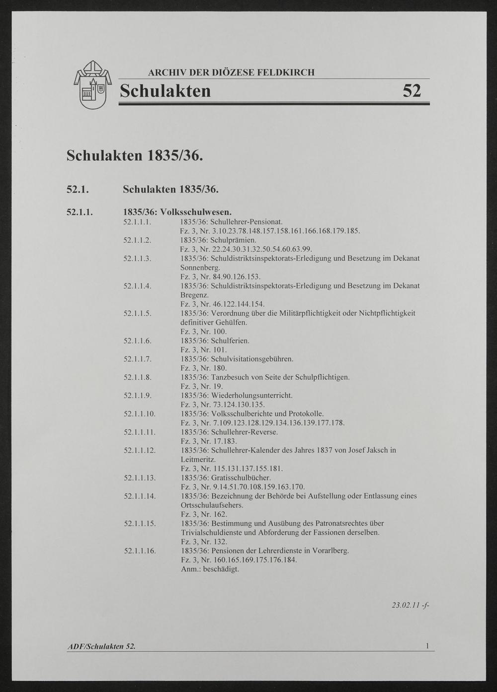 Schulakten - Generalvikariat Feldkirch