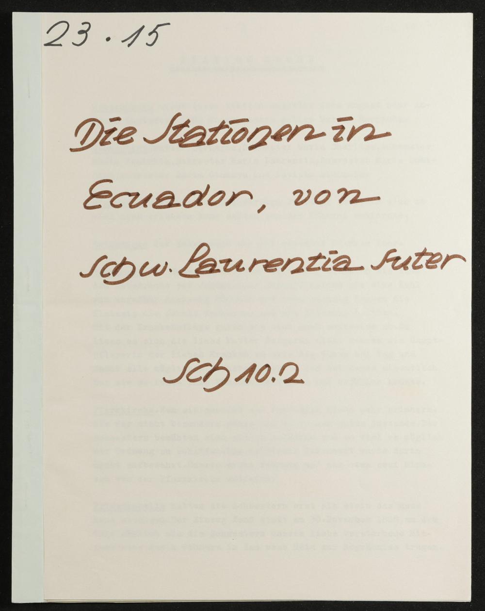 Die Stationen in Ecuador, v. Sr. Laurentia Suter