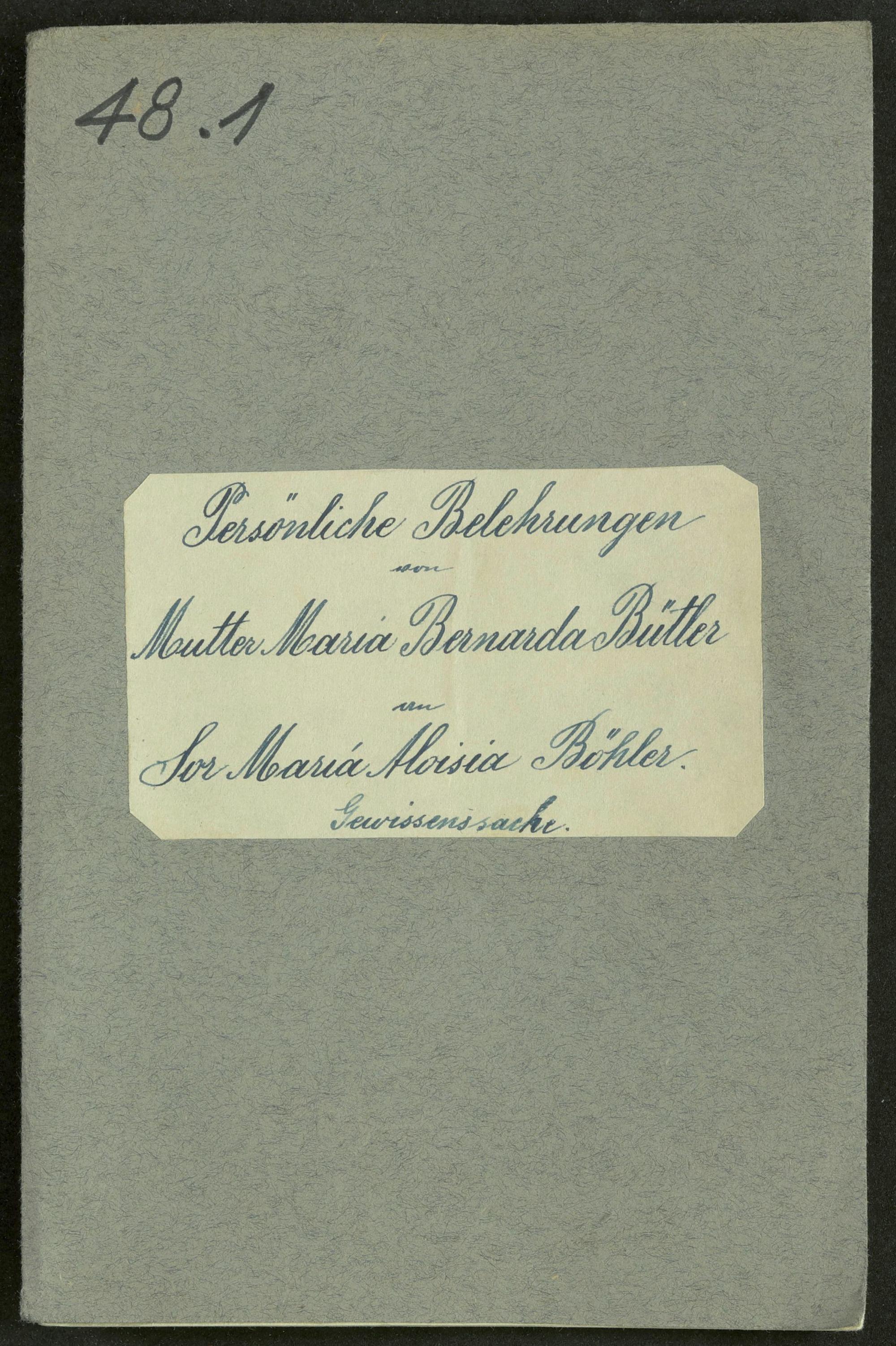 Persönliche Belehrungen an Sr. M. Aloisia Böhler