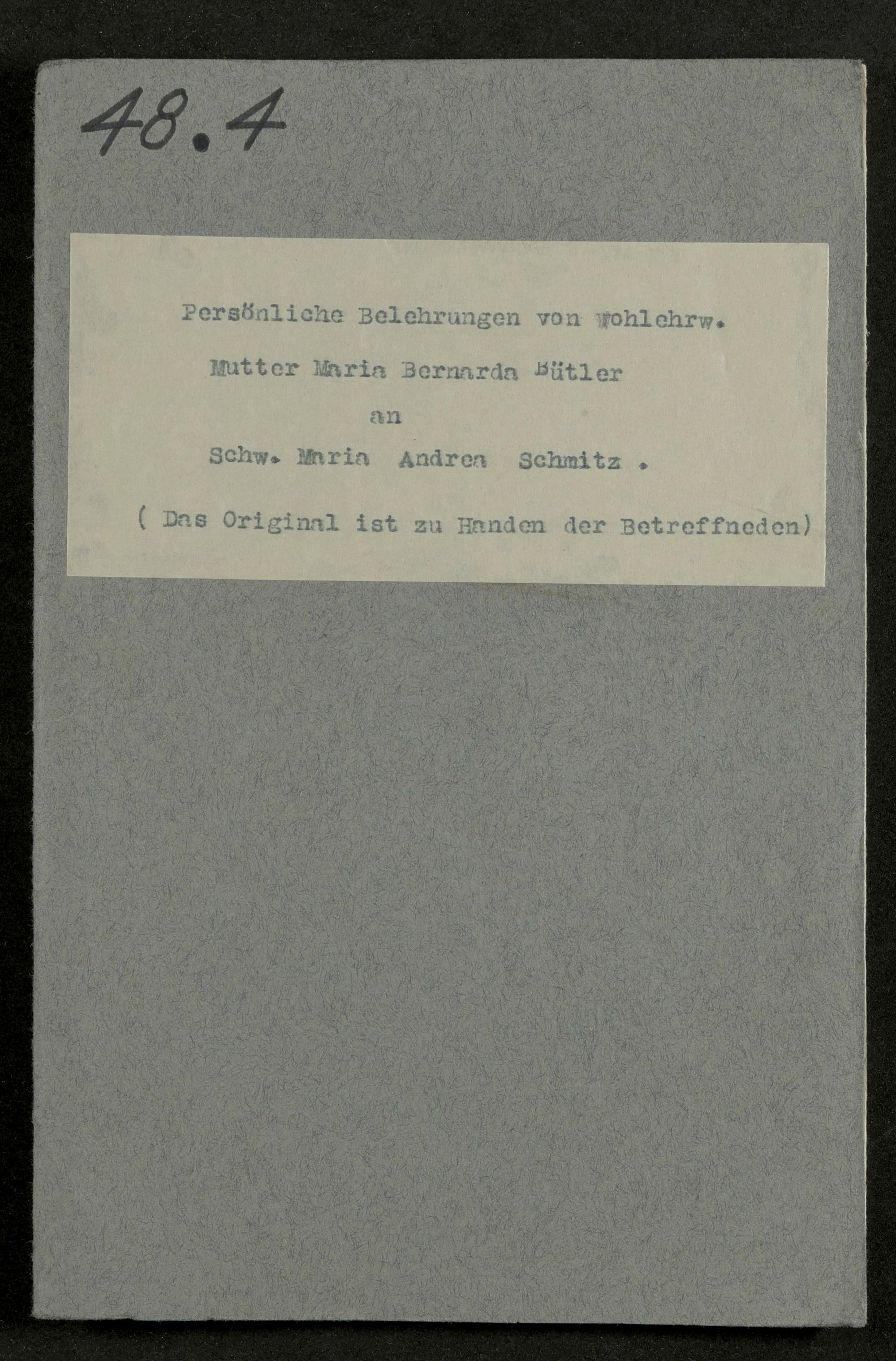 Persönliche Belehrungen an Sr. M. Andrea Schmitz