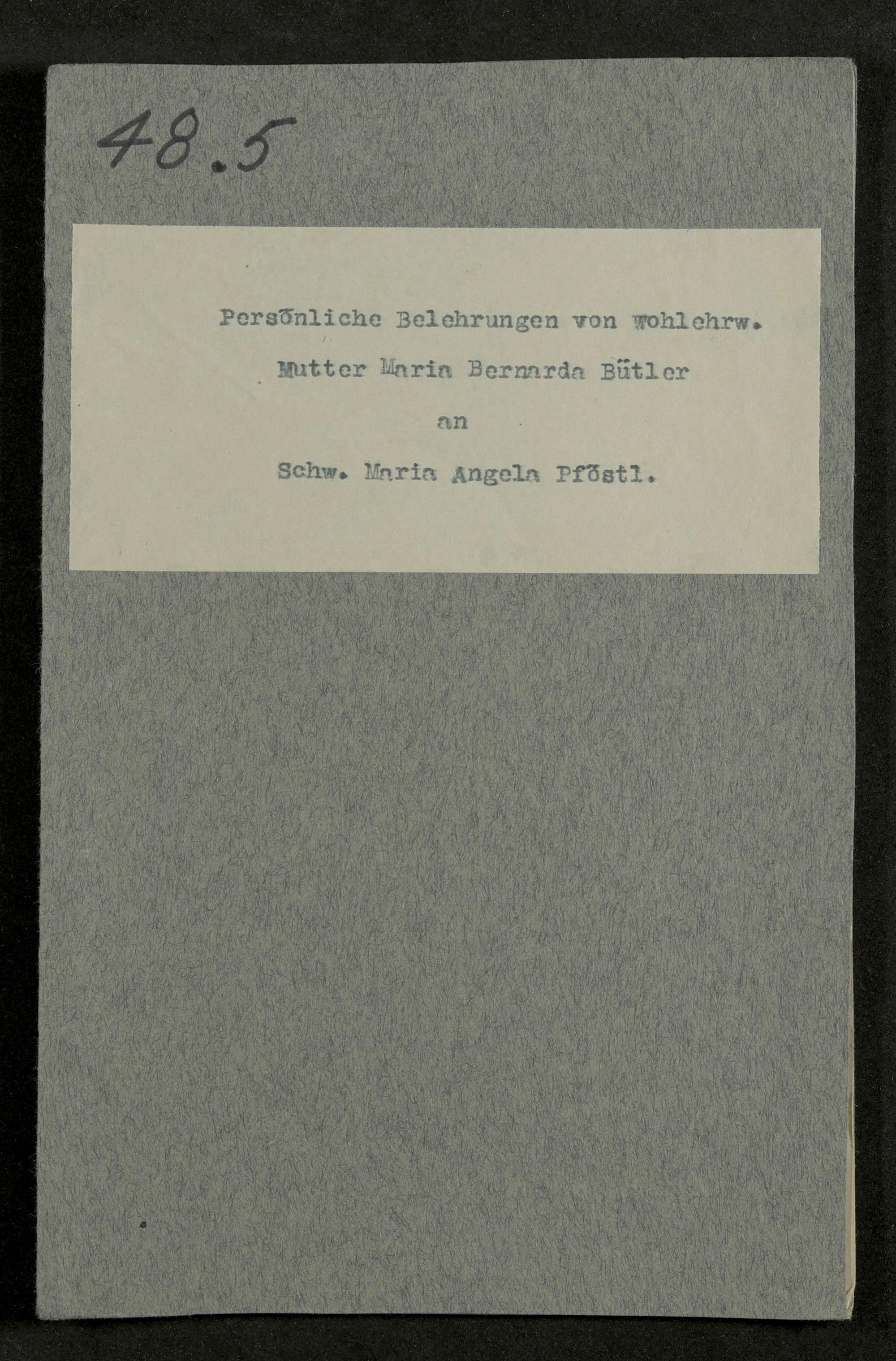 Persönliche Belehrungen an Sr. M. Angela Pföstl