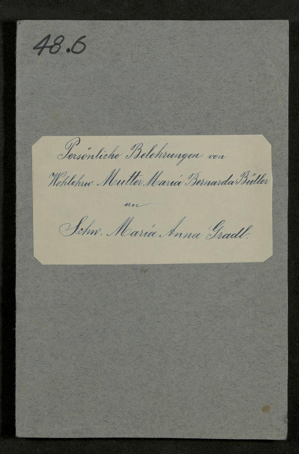 Persönliche Belehrungen an Sr. M. Anna Gradl