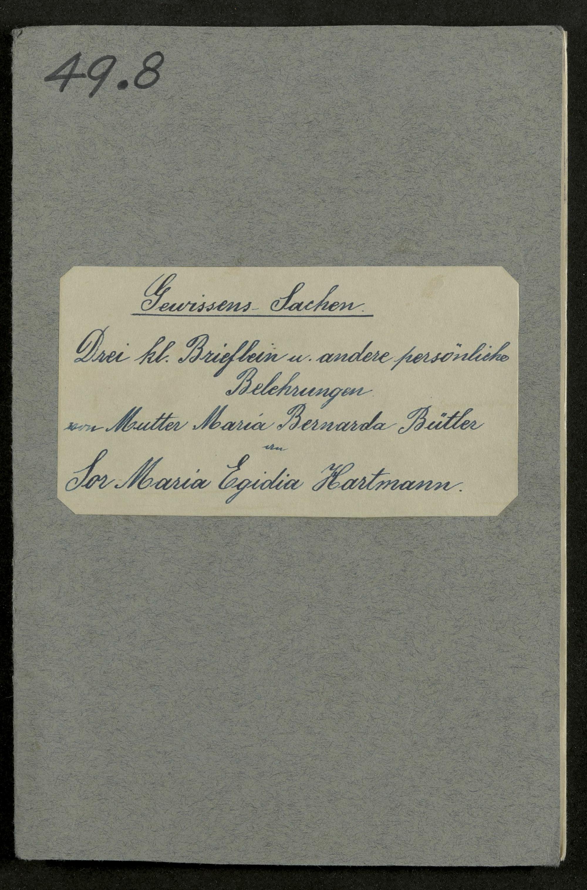 Drei kleine Brieflein an Sr. M. Egidia Hartmann