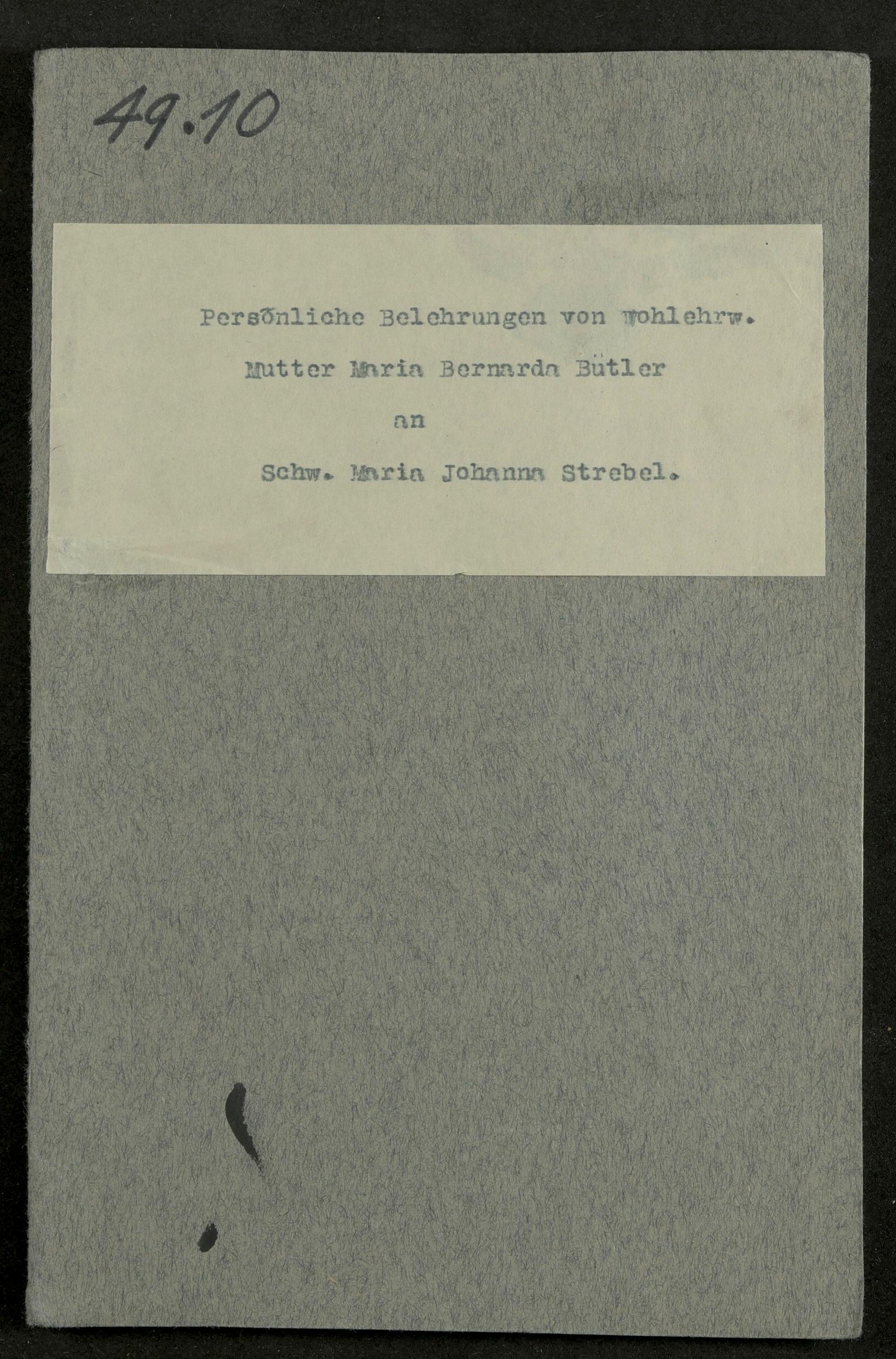 Belehrungen an Sr. M. Johanna Strebel Schuck