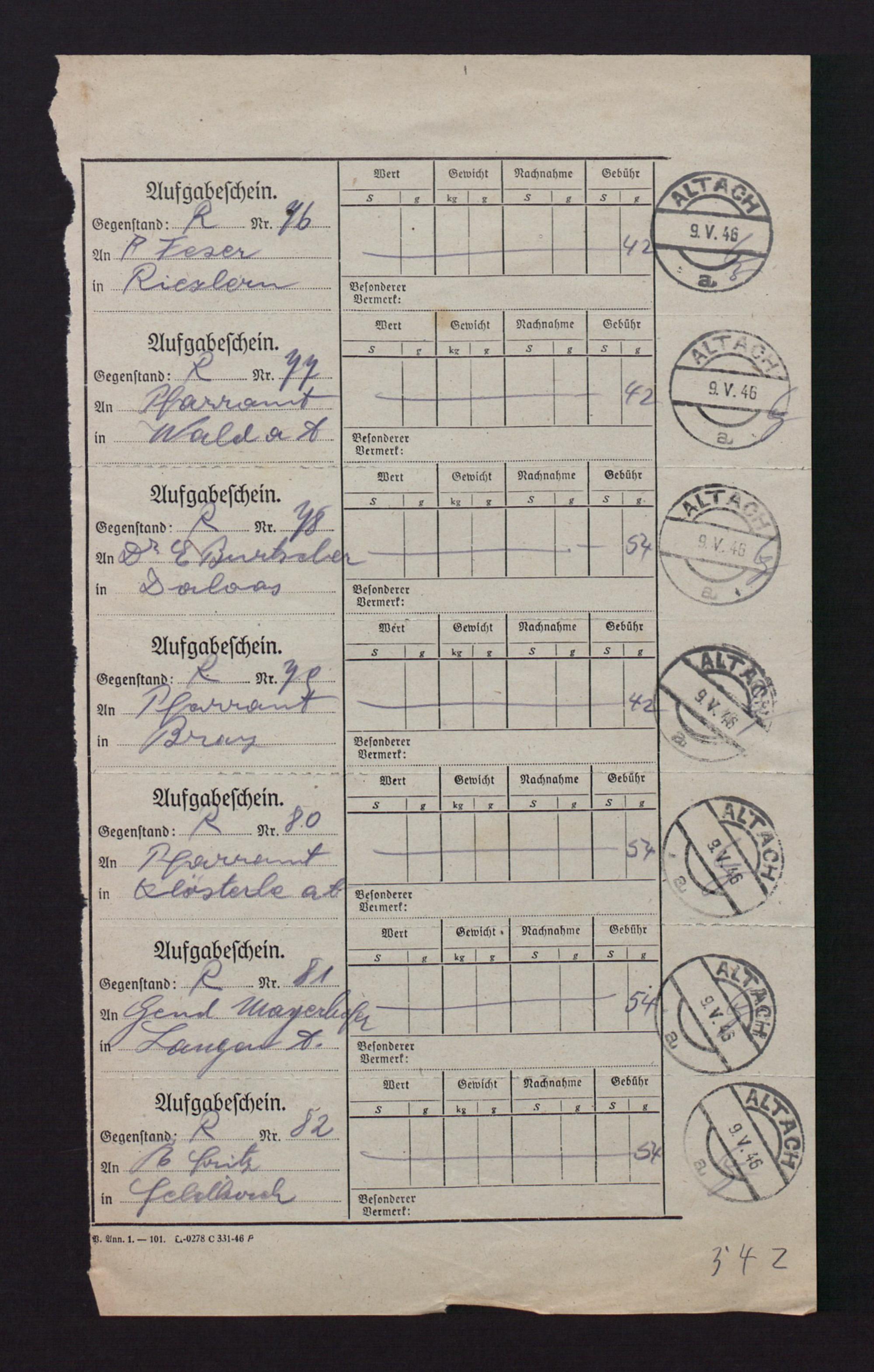 Aufgabeschein