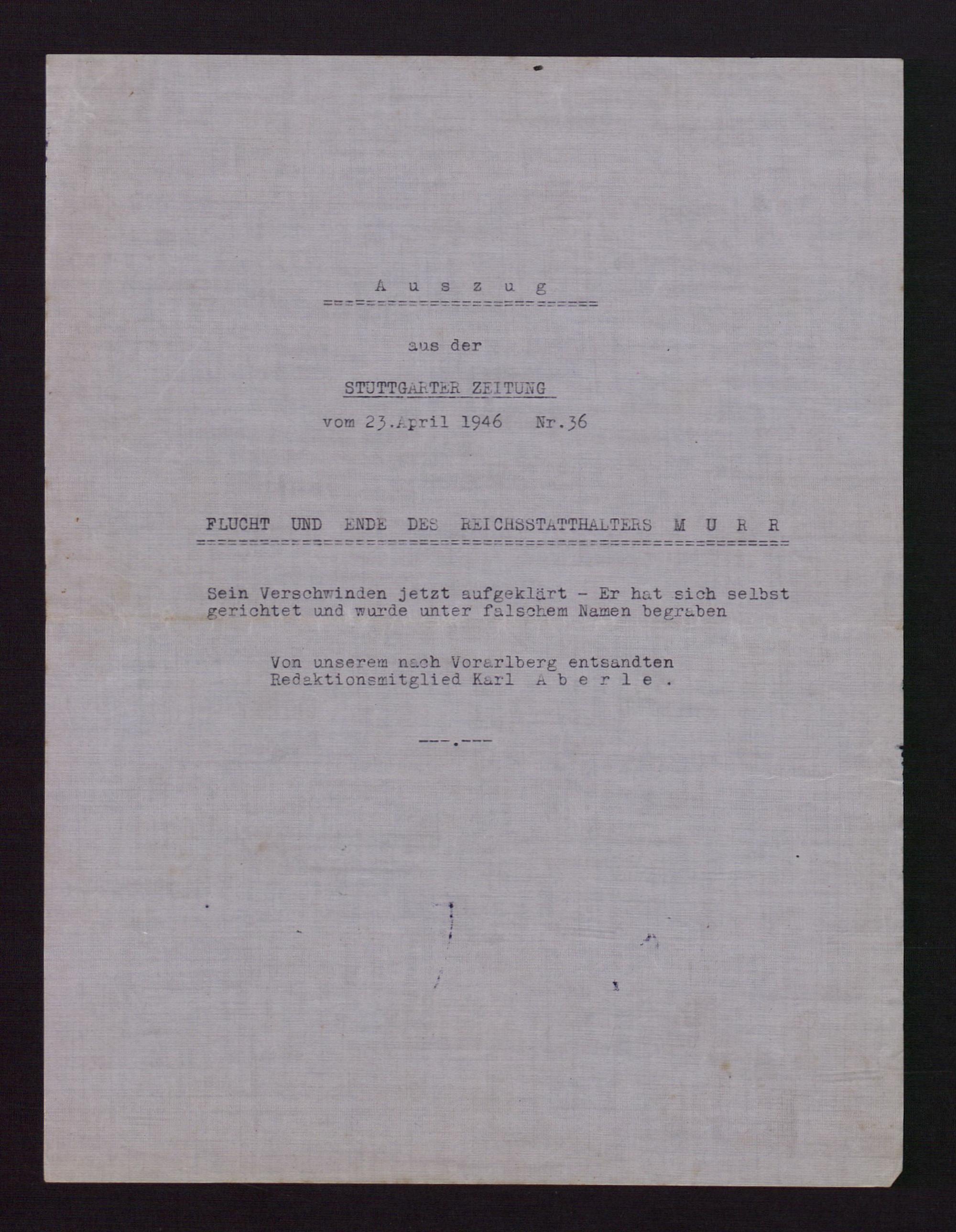 Auszug aus Stuttgarter Zeitung
