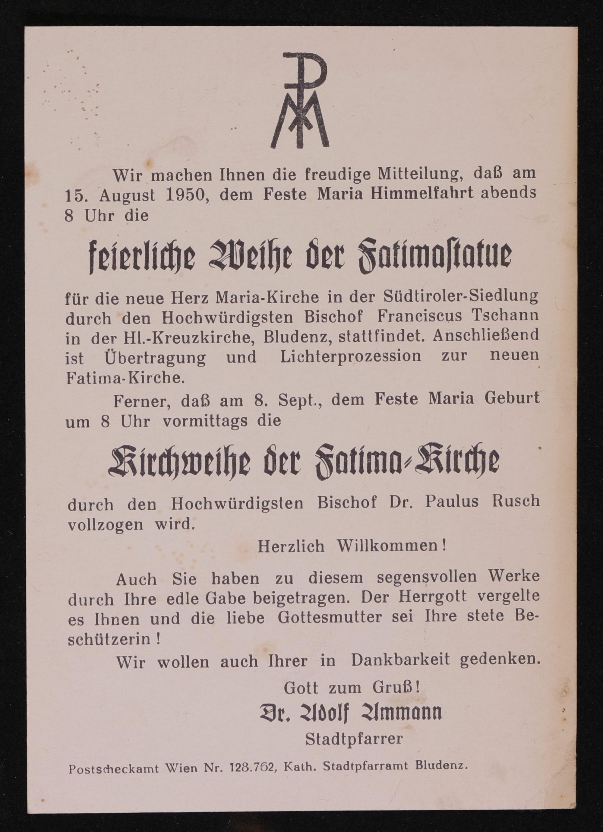 Adolf Ammann - Kirchweihe Fatima-Kirche