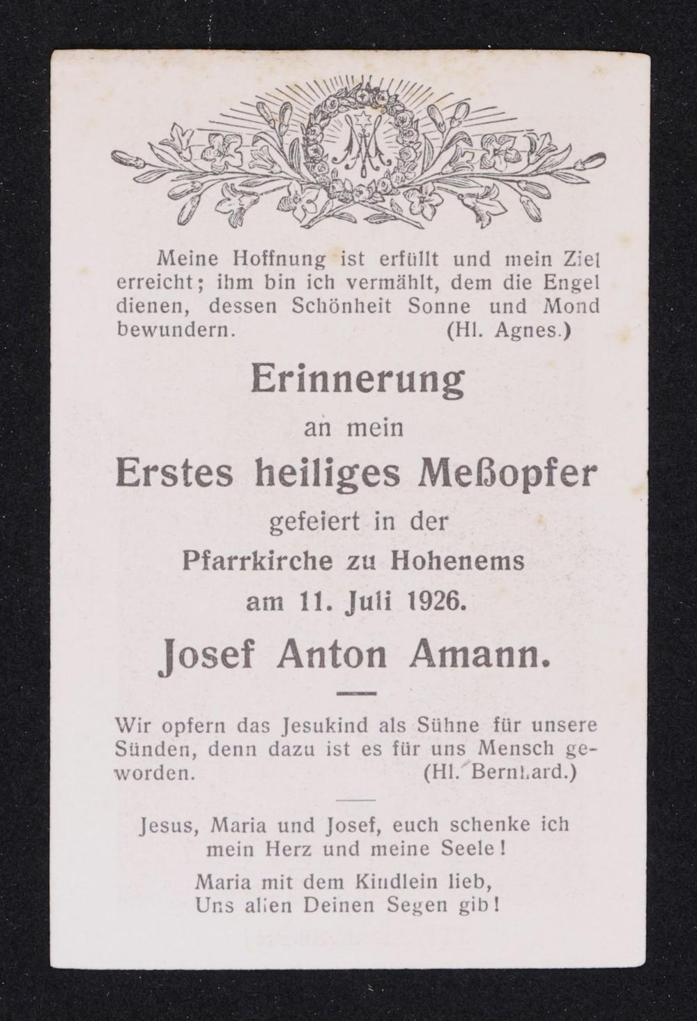Josef Anton Amann - Primiz