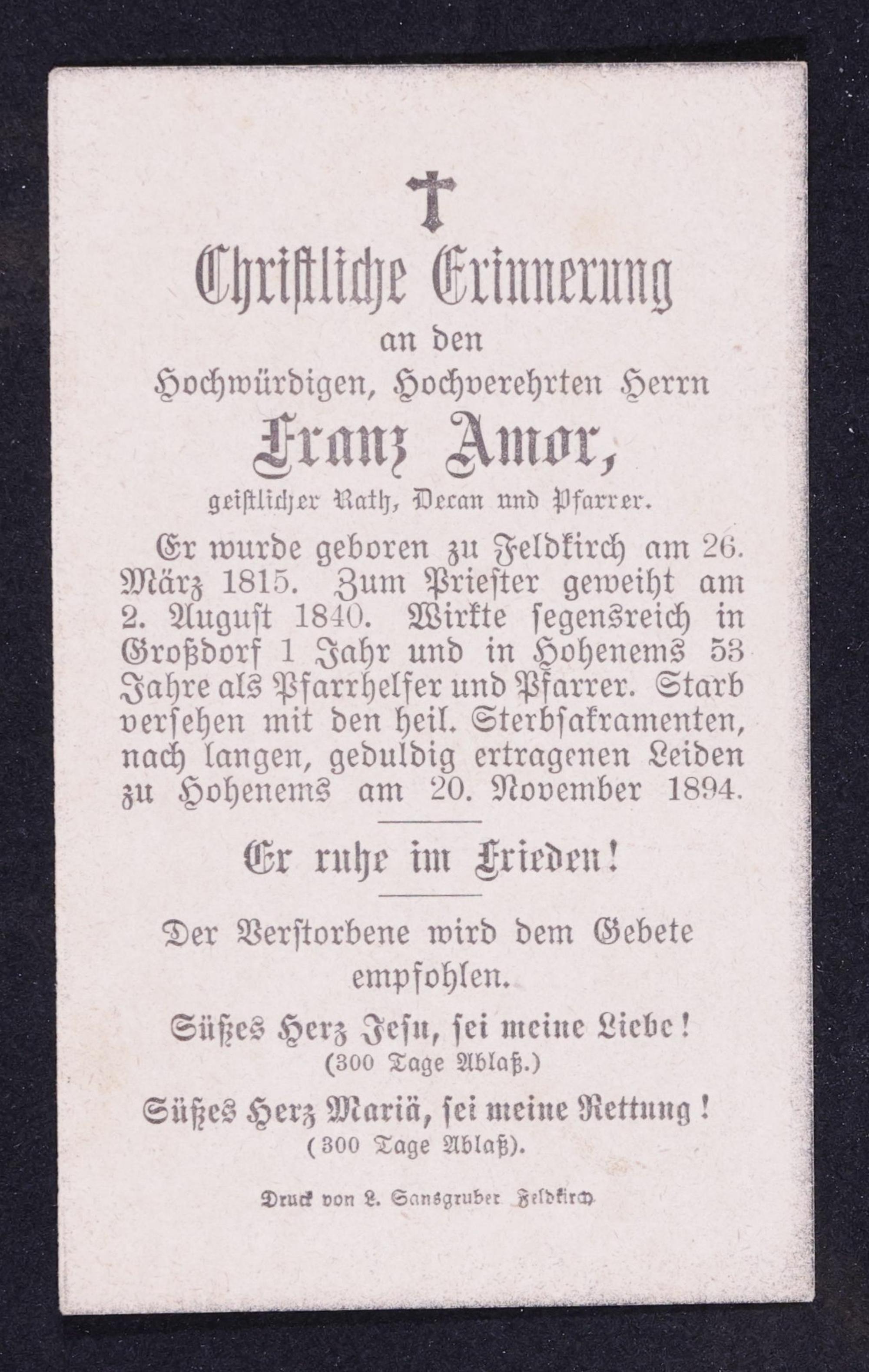 Franz Amor - Sterbebild