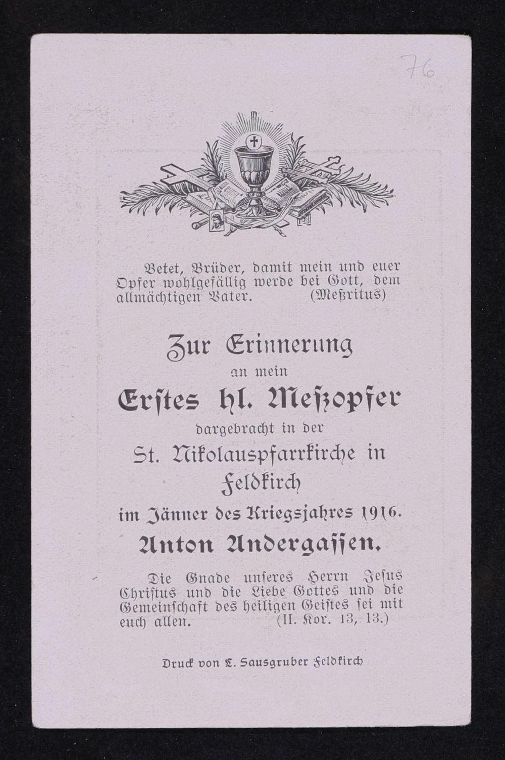 Anton Andergassen - Primiz