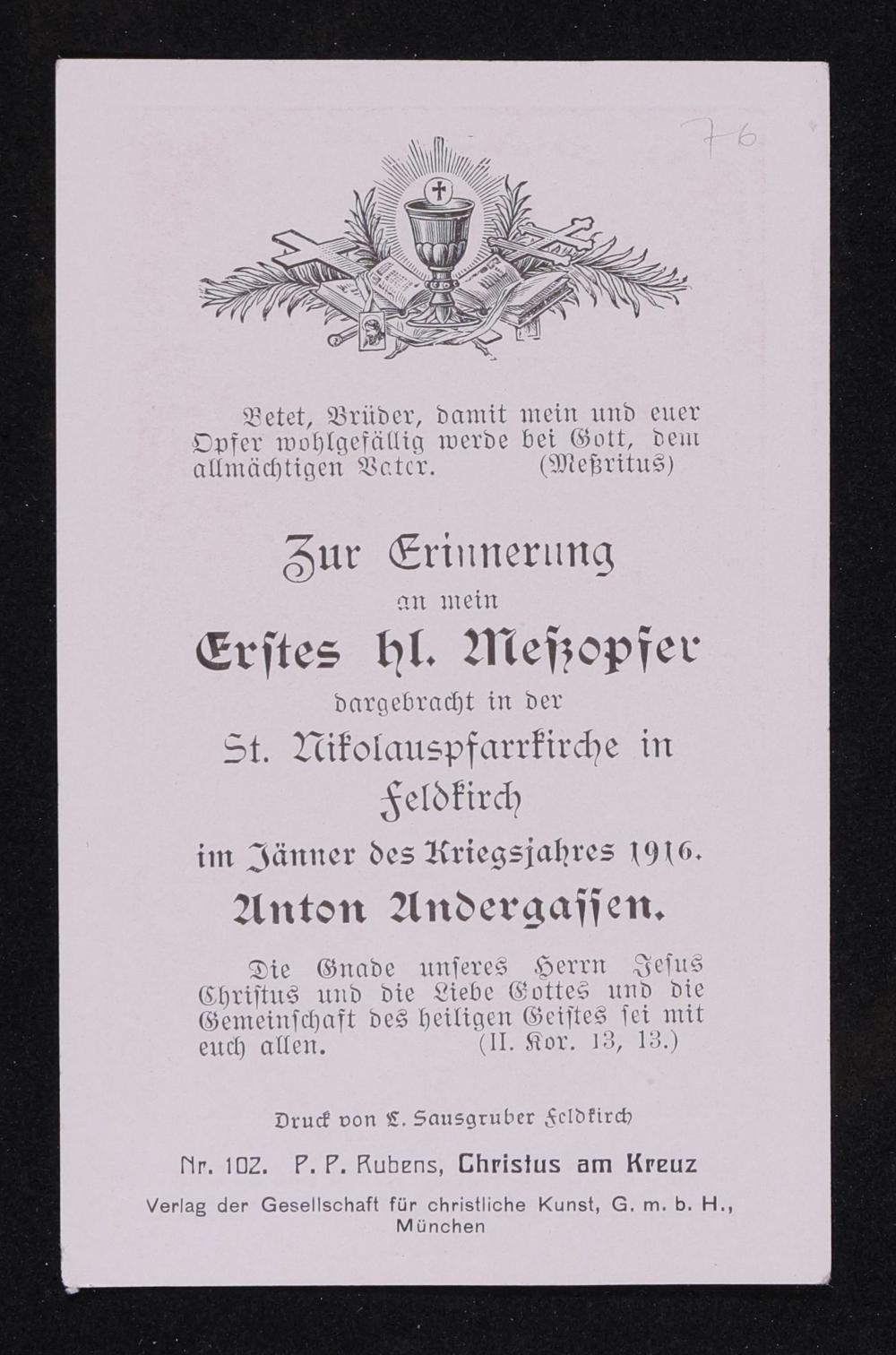 Anton Andergassen - Primiz