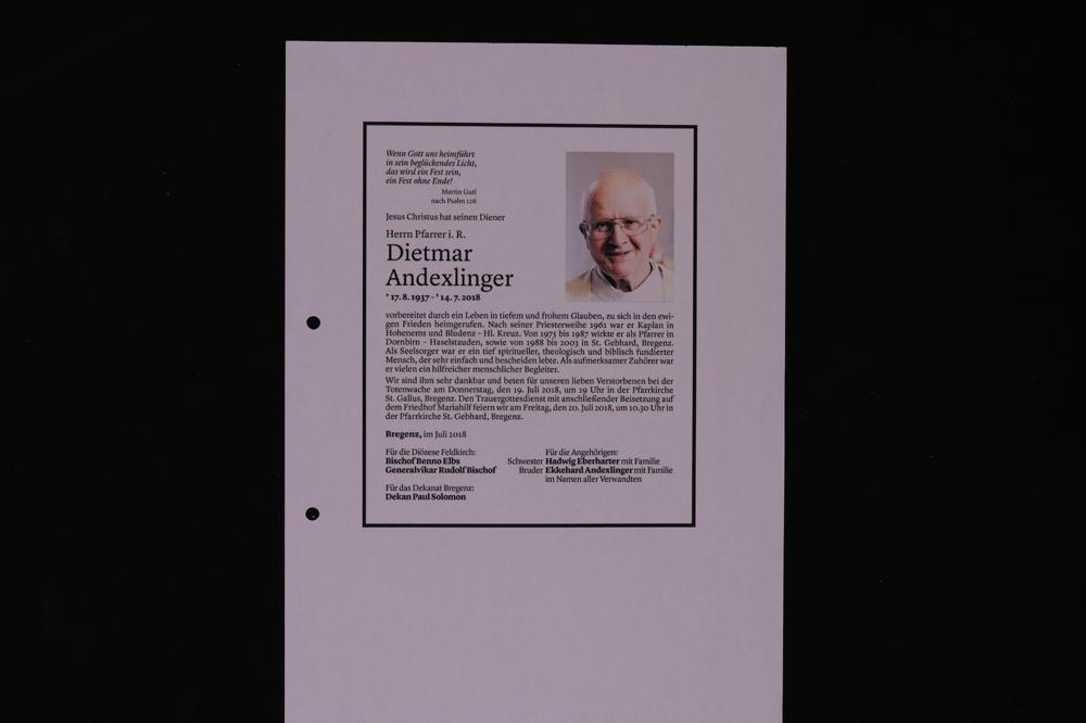 Dietmar Andexlinger - Todesanzeige