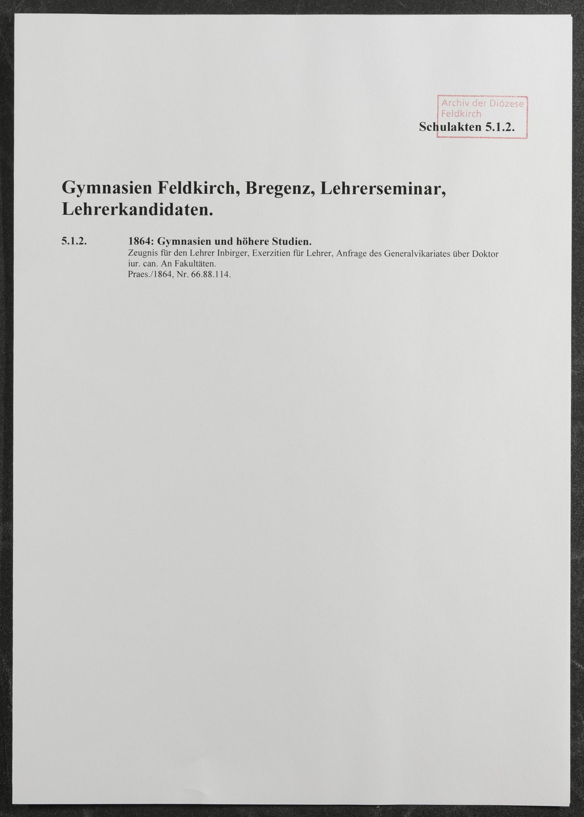 Gymnasien Feldkirch, Bregenz - Generalvikariat Feldkirch
