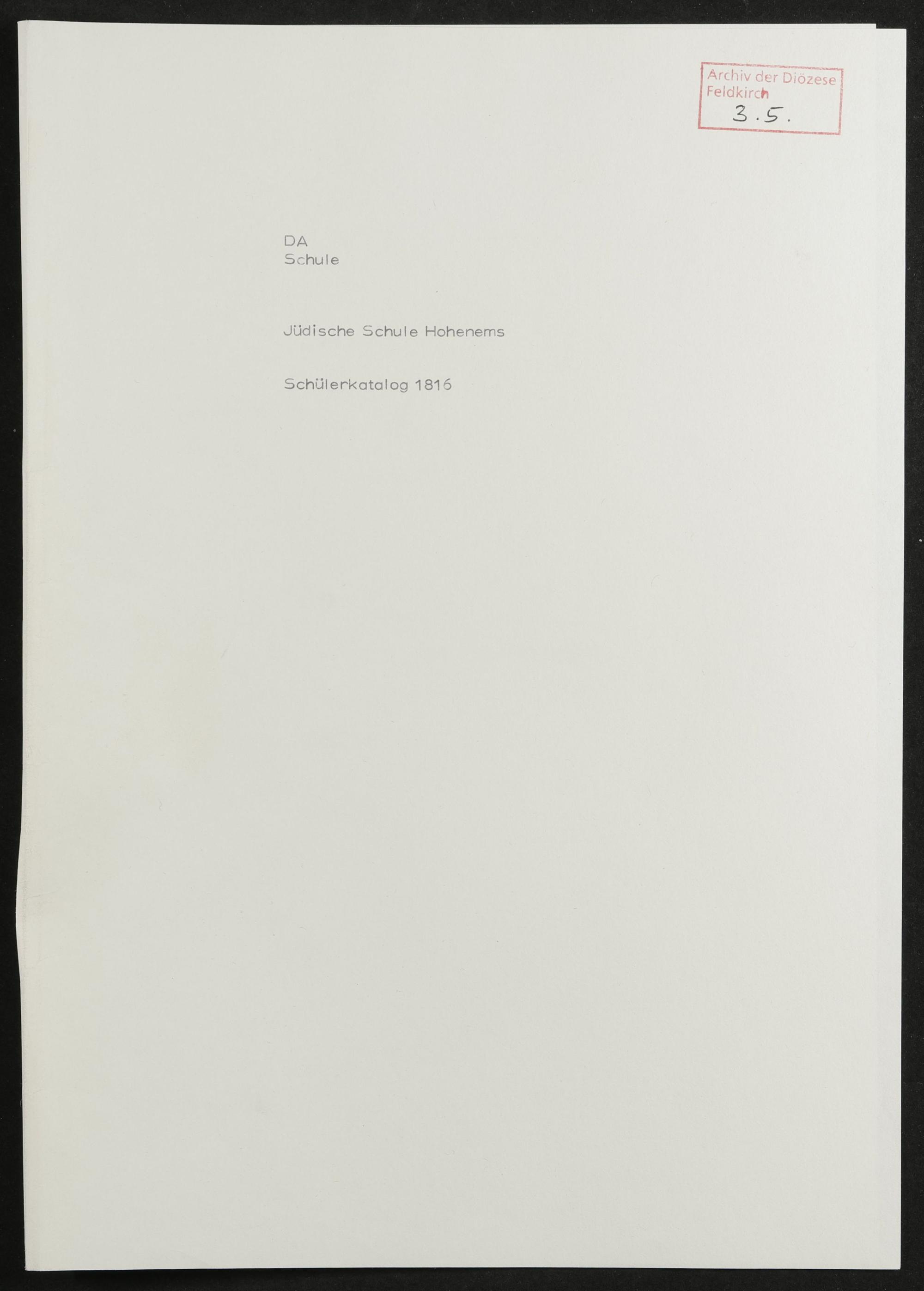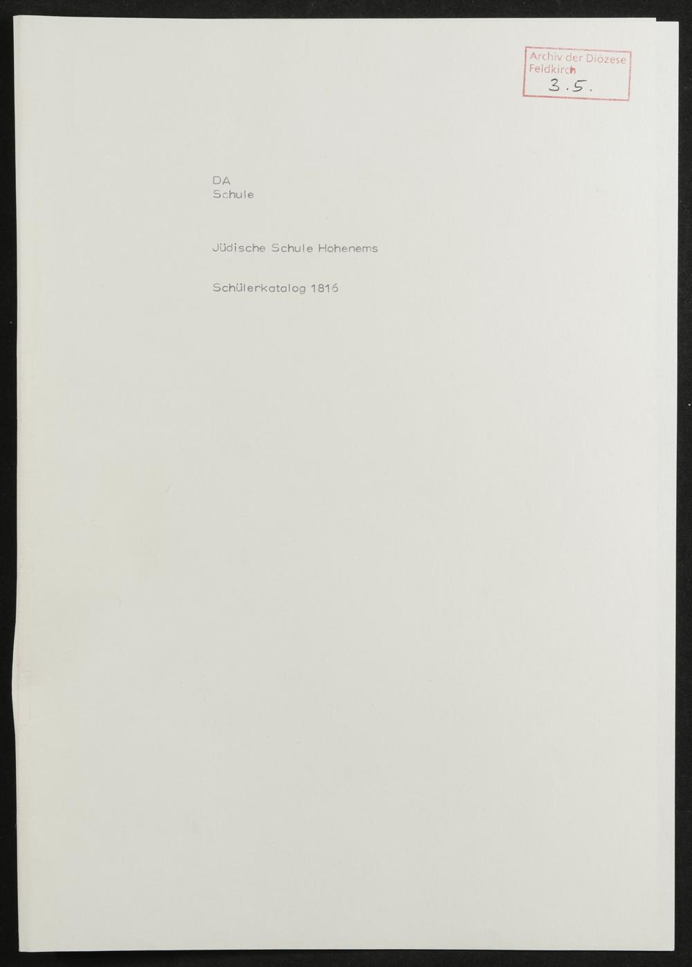 Jüdische Schule Hohenems - Generalvikariat Feldkirch